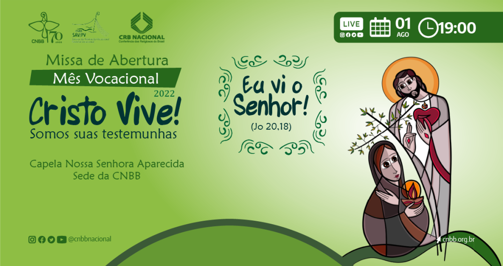 A celebração de abertura nacional do Mês Vocacional acontecerá no dia 1º de agosto, às 19h, na Capela Nossa Senhora Aparecida, da CNBB, em Brasília (DF). A missa será presidida pelo bispo de Novo Hamburgo (RS) e presidente da Comissão para os Ministérios Ordenados e a Vida Consagrada da CNBB, dom João Francisco Salm. A […]