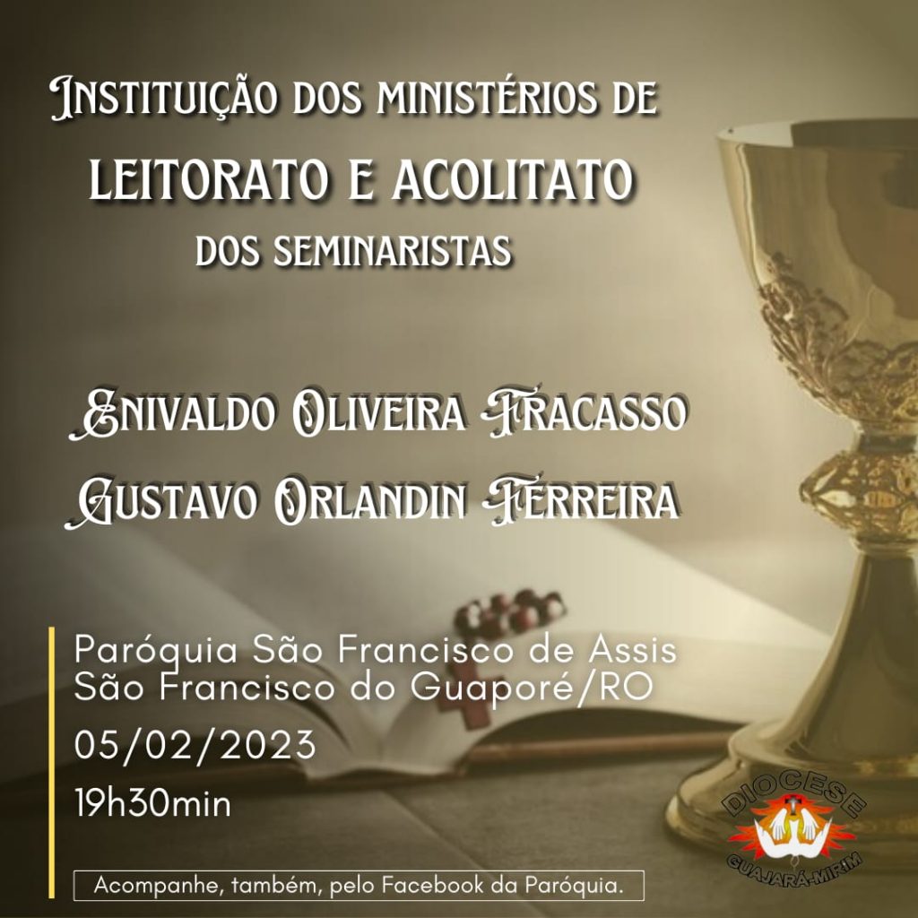A Diocese de Guajará-Mirim convida você para participar conosco da Celebração Eucarística, presidida por Dom Benedito Araújo, na qual serão instituídos para os ministérios de Leitor e Acólito os seminaristas Enivaldo de Oliveira Fracasso e Gustavo Orlandin Ferreira. A celebração acontecerá na Igreja Matriz da Paróquia São Francisco de Assis em São Francisco do Guaporé- […]