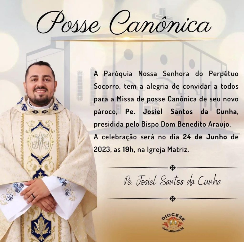 No dia 24 de Junho de 2023, será realizada a Missa da Posse canônica do Padre Josie, Missa realizada na Paróquia Nossa Senhora do Perpétuo Socorro em Corumbiara – RO.