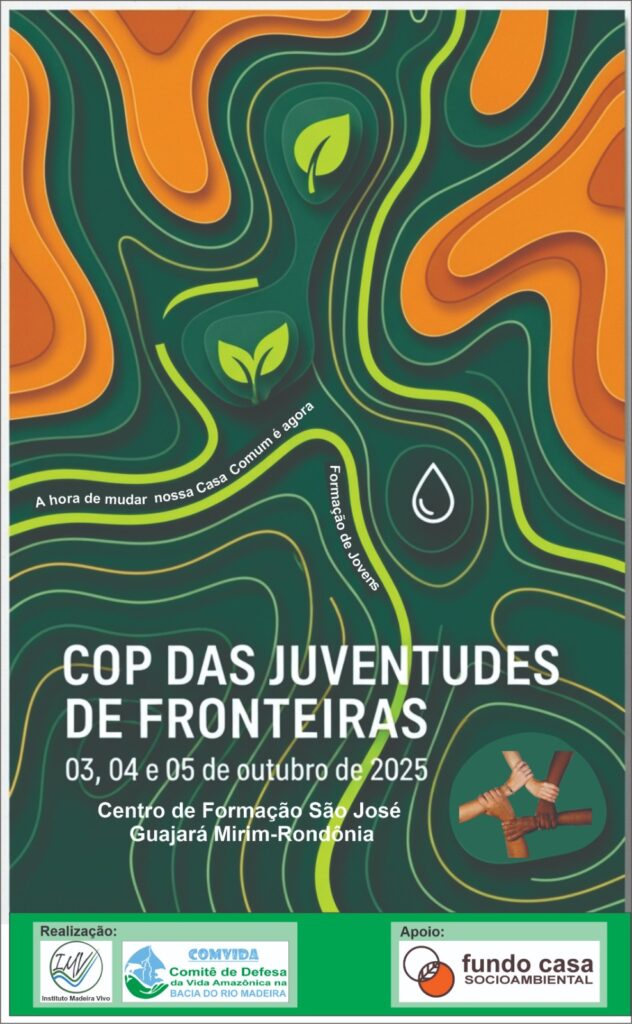 É com grande alegria que convidamos você a participar da COP Juventudes das Fronteiras, um encontro de fé, esperança e compromisso com a vida, que reunirá jovens de diferentes comunidades e mesmo de diferentes países para troca de saberes, cuidado da terra, mudanças climáticas, para celebrar, refletir e fortalecer a caminhada. 📅 Data: 03, 04 […]