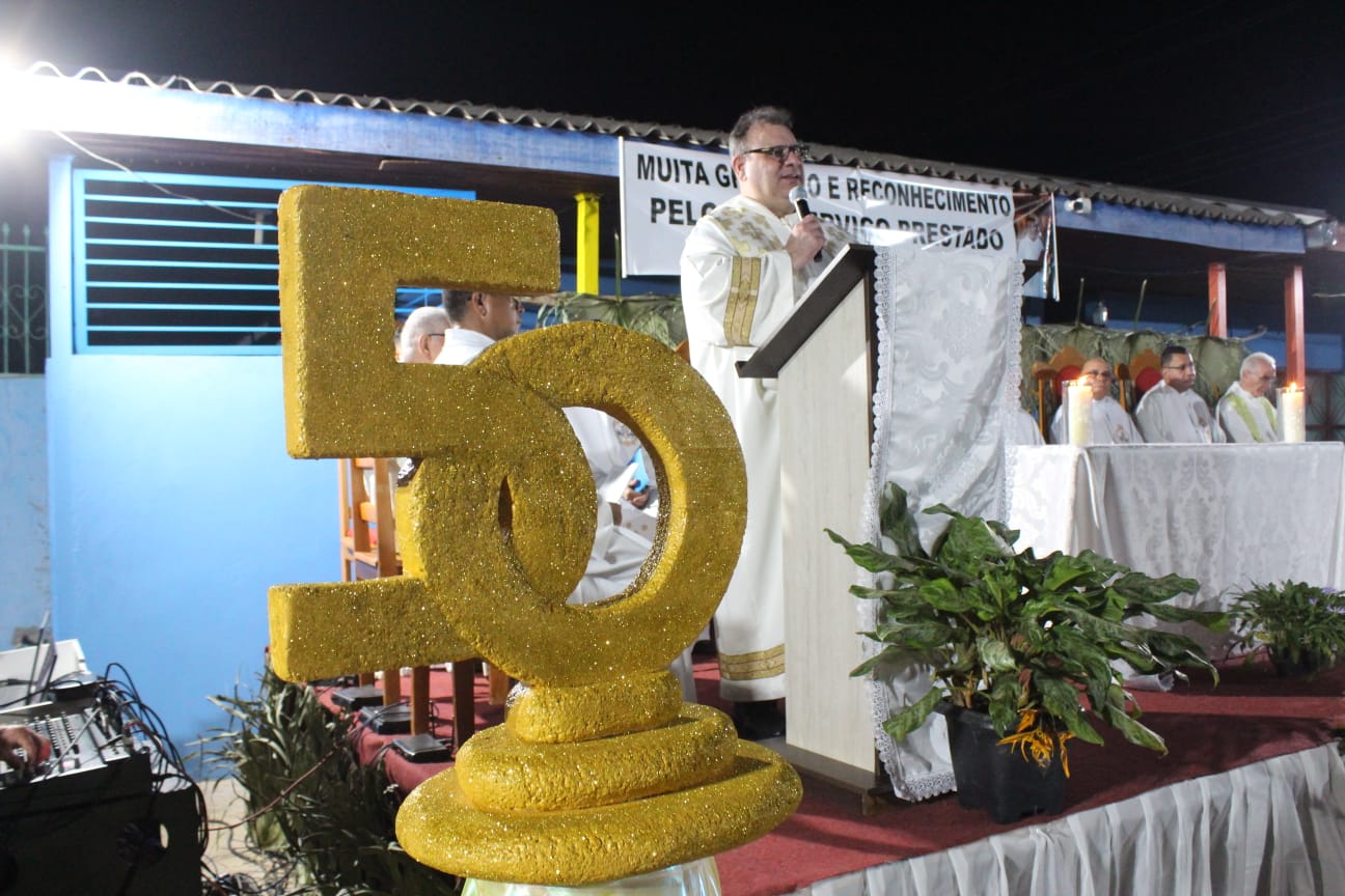graças alcançadas. Nossa gratidão a Deus por nos agraciar com a dadiva de poder testemunhar o ardor do fecundo ministério presbiteral do Pe. Francisco. Eu lamento não poder estar pessoalmente convosco nesta festa que envolve a todos; porém o nosso presbitério e toda a Diocese de Guajará-Mirim se irmana a você Pe. Francisco, neste reconhecimento e louvor pelos caminhos palmilhados na vida desta Diocese, começando na Igreja Catedral de Nossa Senhora do Seringueiro em Guajará – Mirim, São Francisco do Guaporé, Seringueira e agora no antigo e novo amor São Miguel do Guaporé. Em tudo, percebemos um coração tão embrenhado e pulsante no nosso meio, que percorrendo as regiões que tiveram a graças de desfrutar do seu cuidado de pastor, o que eles testemunham é fascinante quando falam: “das distancias enfrentadas, do começo de tudo neste chão amazônico, da velha bicicleta enlameada e carregada no ombro, chegava de qualquer jeito, um missionário companheiro e amig0 sempre presente…” Além da missão pastoral, entre tantos talentos, você sabe contemplar e ler o céu estrelado, com destaque para a estrela do oriente nos finíssimos cartões trabalhados em três dimensões com as palhas e folhagens que recolhe por onde passa. Um artista nato! Parabéns Pe. Francisco! Obrigado por tudo! Que o Divino Mestre o continue cumulando de bençãos e graças para bem servi-Lo. Receba minha benção! Rogo também sua benção para mim e toda a nossa Diocese de Guajará-Mirim.