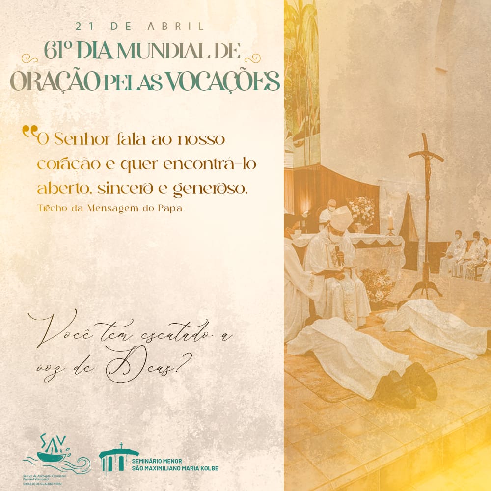 Neste Dia Mundial de Oração pelas Vocações, elevamos nossas preces ao céu, confiantes de que o Senhor continuará a chamar pessoas corajosas e generosas para o serviço do Evangelho. Que cada um de nós possa responder com um “sim” confiante e generoso, sabendo que, no serviço aos outros, encontramos a verdadeira realização e alegria.