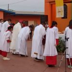 Logo em seguida a procissão, a celebração eucaristia foi presidida por nosso bispo, Dom Benedito de Araújo, que foi saudado e acolhido fraternalmente pelo pároco da comunidade, Pe. José Elio.
