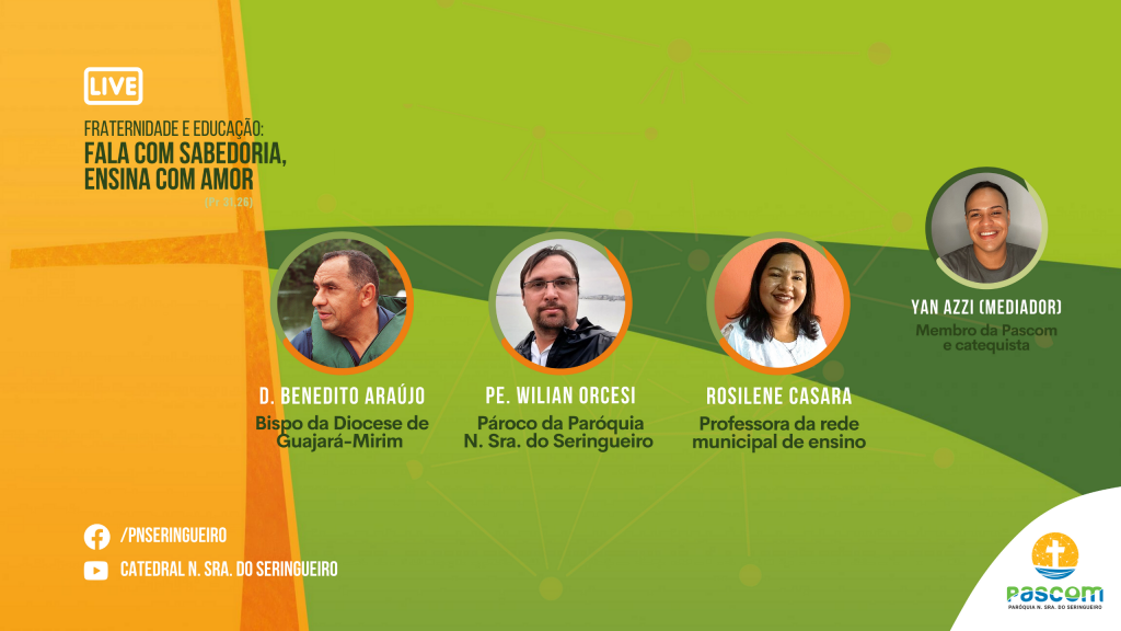 A Pascom da Catedral Nossa Senhora do Seringueiro realizou na quarta-feira, dia 23, às 20h a live sobre a Campanha da Fraternidade deste ano, cujos tema e lema são: “Fraternidade e educação: fala com sabedoria, ensina com amor” (Pr 31,26), convidando toda a paróquia e diocese para acompanharem. A live contou com a presença especial de Dom Benedito Araújo, Pe. Wilian Orcesi e, também, da professora Rosilene Casara. A reunião foi transmitida nas mídias socias da Catedral e da Diocese de Guajará-Mirim: Facebook e YouTube.