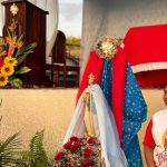 “Depois de quarenta dias pela busca de nossa conversão, Tempo da Quaresma, celebramos com grande júbilo a ressurreição de Nosso Senhor Jesus Cristo, no sábado de Aleluia. A Celebração da Páscoa, a maior celebração da nossa vida, ela é o centro de tudo o que aqui realizamos. Desde então, essa bela vela que está aqui à frente, o Círio Pascal, vem nos acompanhar. Essa vela que aqui se encontra, representa e nos recorda a vitória de Cristo sobre os nossos pecados, sobre a morte. Cristo é o nosso centro!