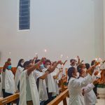 Sábado Santo, foi celebrada, na Catedral Nossa Senhora do Seringueiro, a Solene Vigília Pascal, presidida pelo Bispo Dom Benedito Araújo e concelebrada pelo Padre Claudinei de Lira, com a participação do Diácono Francisco Alves.