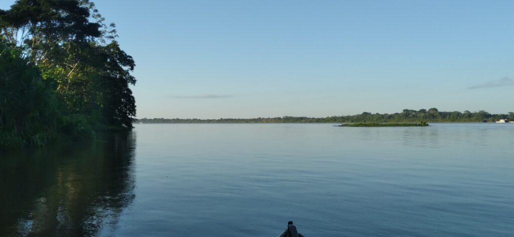 No primeiro dia a equipe partiu por volta das 07h00 com um barco equipado com motor com potência de 40 HP, tendo como piloto o jovem Cacildo, ribeirinho, conhecedor do rio e seus “furos”, chegando à aldeia São Luiz às 18h30, onde foram recebidos pelo professor Salomão e seu irmâo Nhampá Oro Win.